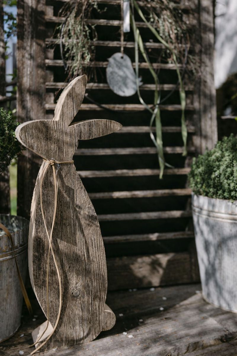 Schlichter Osterhase aus Holz in natürlicher, verwitterter Optik. Zeitlos gestaltet und vielseitig einsetzbar für Oster- und Frühlingsdekoration im Innen- und Außenbereich. Ein natürlicher Blickfang für Eingangsbereich, Terrasse oder Garten. Handgefertigt – jedes Stück ein Unikat.